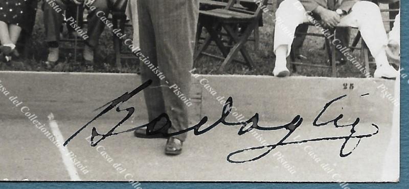 BADOGLIO PIETRO (Grezzano Monferrato 1871 - Grezzano Badoglio 1956). Militare e politico italiano. Maresciallo d’Italia, senatore e capo del Governo dal 25 luglio 1843 all’8 giugno 1844. Firma al recto di cartolina fotografica che lo mostra giocare a bocce. Formato cm 14x9, fine anni ‘40, ottima conservazione. (Rif.F5610-76)