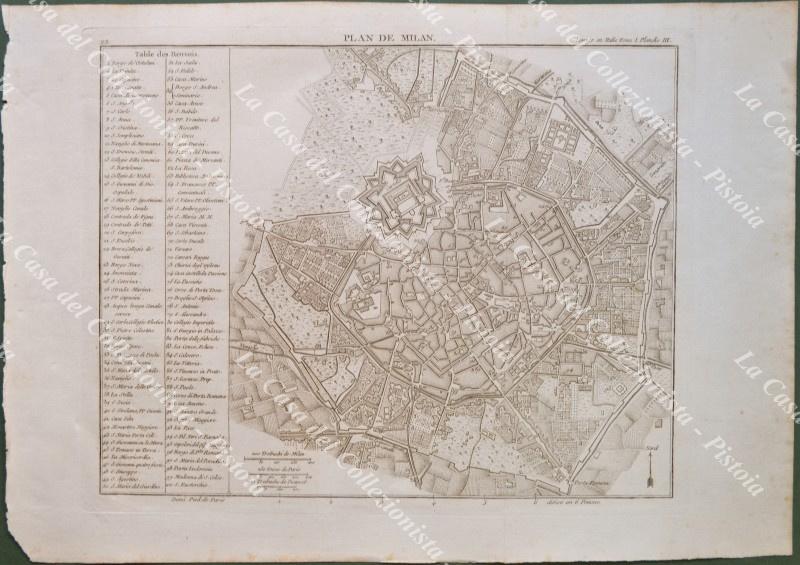 MILANO. “Plan de Milan”. Pianta della città. De La Lande, Parigi 1769