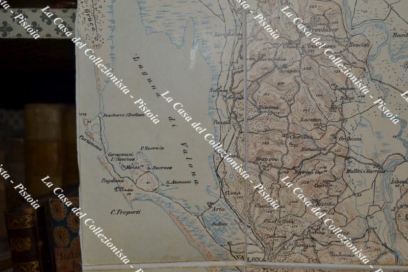 Militaria, PRIMA GUERRA, ALBANIA. CARTA DELLA ZONA D'OCCUPAZIONE DI VALONA SCALA 1:100.000. Ufficio Topografico del Comando Truppe Occupazione Albania, settembre 1916. Più volte ripiegata, cm 87x84. Piccole imperfezioni. (Rif.F7431)