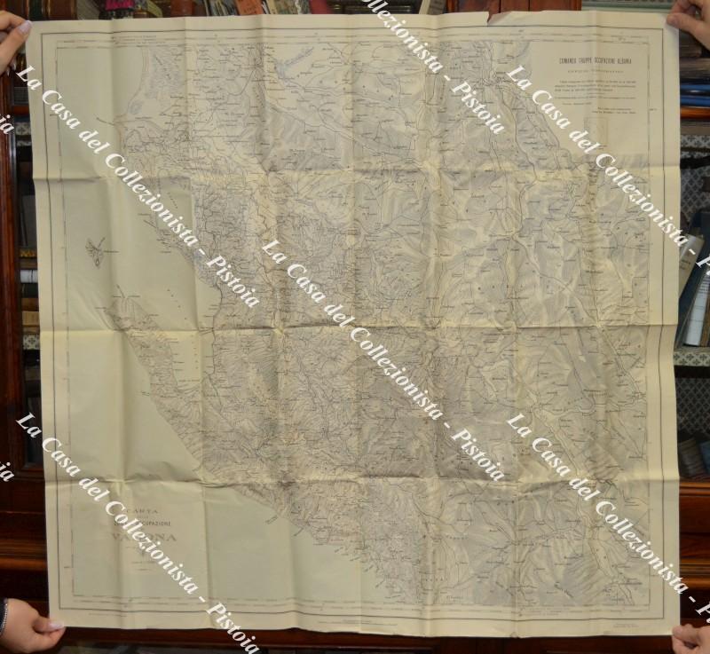 Militaria, PRIMA GUERRA, ALBANIA, CORCIA. Ufficio topografico di Valona, edizione anno 1917, scala 1:100.000. Cm 65x83, più volte ripiegate. Ingiallimenti. (Rif.7430)