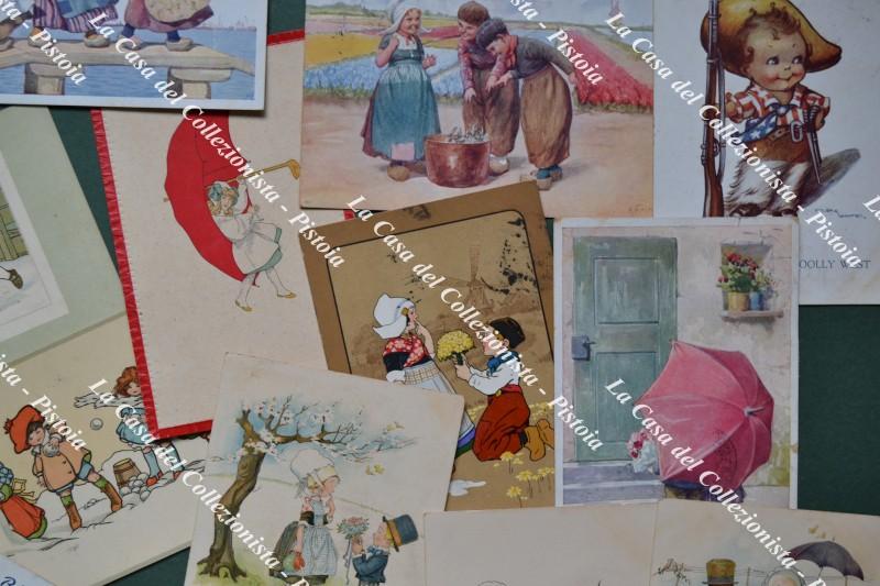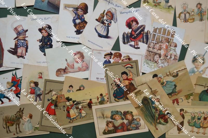 BAMBINI. 47 cartoline a colori di piccolo formato (cm 14x9) spedite ad unico destinatario tra il 1914 ed il 1930. Realizzate da noti illustraori; non vi sono cartoline fotografiche. Conservazione in genere buona eccetto lievi inevitabili difetti. (Rif.F7418)