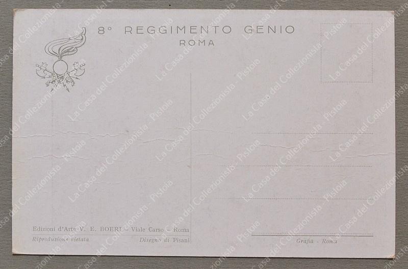 8° REGGIMENTO GENIO ROMA. Cartolina d'epoca, ediz. Boeri, anni 1930