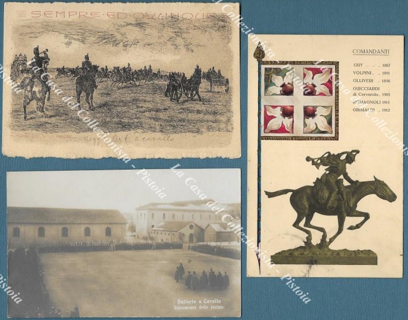 ARTIGLIERIA A CAVALLO. 3 cartoline di cui 2 viaggiate 1909 e 1914. Piccolo formato (cm 14x9). (Rif.F7844)
