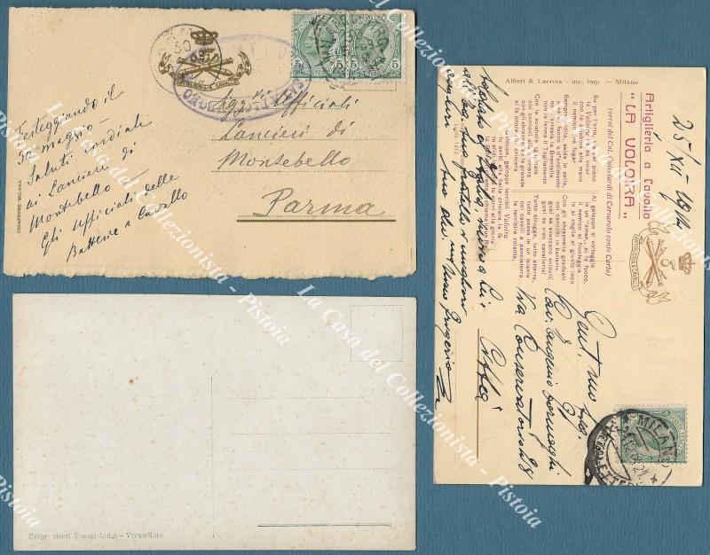 ARTIGLIERIA A CAVALLO. 3 cartoline di cui 2 viaggiate 1909 e 1914.