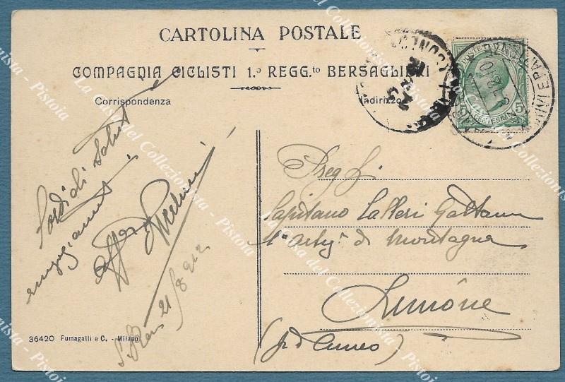 BERSAGLIERI 12° COMPAGNIA CICLISTI...1912. Cartolina d'epoca viaggiata