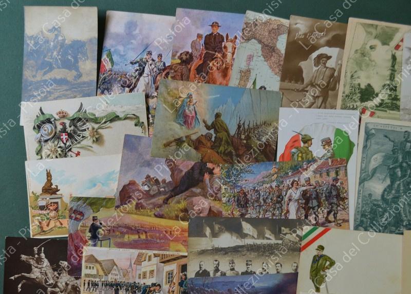 MILITARI. 47 cartoline d'epoca a soggetto militare - patriottico (4 formato grande), 1 ripetuta, 1 doppia, viaggiate e no. Periodo 1915 - 1940. Buona conservazione. (Rif.F7530)