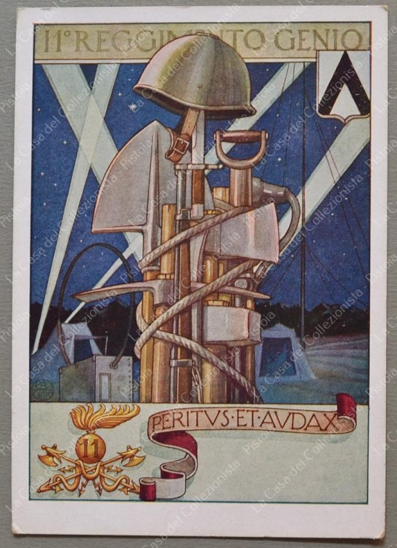 XI° REGGIMENTO GENIO. Cartolina d'epoca, ediz. Boeri, anni 1930