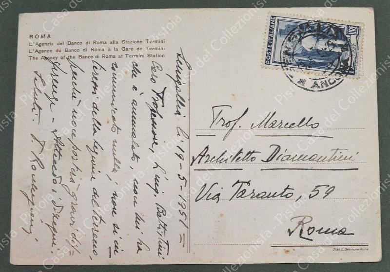 BANCO DI ROMA. Cartolina d'epoca formato grande, viaggiata nel 1951. (Rif.F7020)