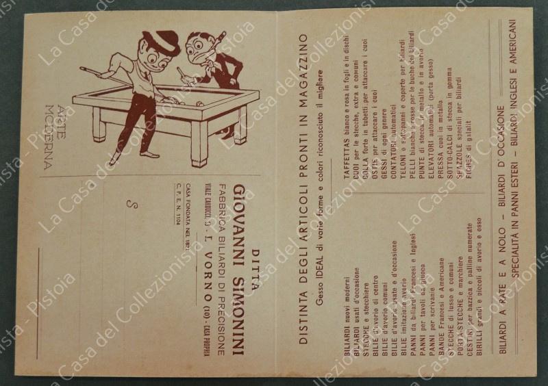 FABBRICA BILIARDI SIMONINI di LIVORNO. Cartolina doppia, anni 1920.