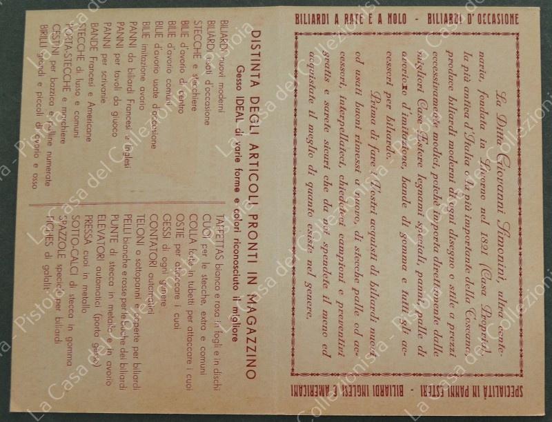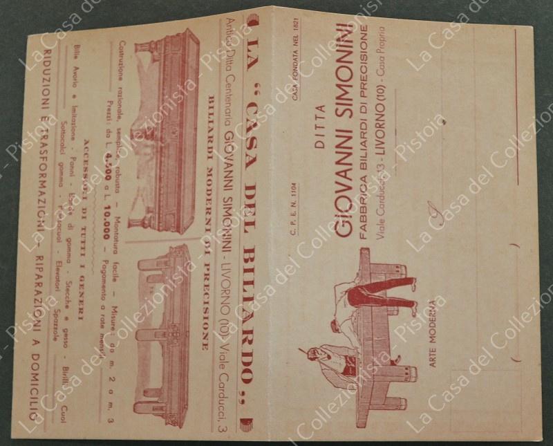 FABBRICA BILIARDI SIMONINI di LIVORNO. Cartolina doppia circa 1910