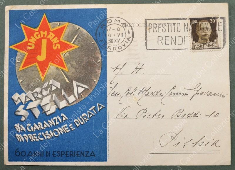 OROLOGI JUNGHANS. Cartolina d'epoca formato grande, viaggiata nel 1936. (Rif.F7714)