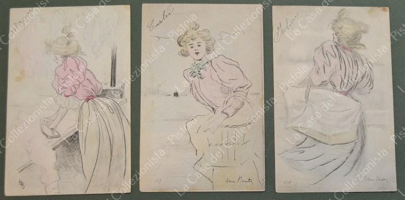HENRI BOUTES. Serie di tre cartoline d'epoca formato piccolo, (numeri 116, 117, 118), viaggiate nel 1900. (Rif.F7074)