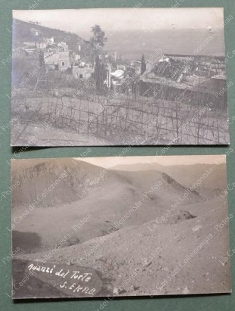 BERGEZZI, Savona. Avanzi del forte S. Elena. 2 cartoline d'epoca fotografiche, scoppio del 1921