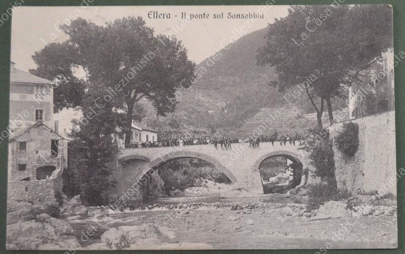 ELLERA, Genova. Il ponte sul Sansobbia. Cartolina d'epoca viaggiata nel 1914. (Rif.F7039)