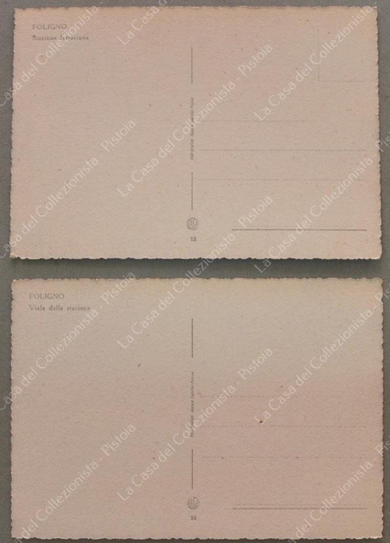 FOLIGNO. 2 cartoline d'epoca formato grande: Viale della Stazione, Stazione Ferroviaria, non viaggiate, anni 1940. (Rif.F6719)