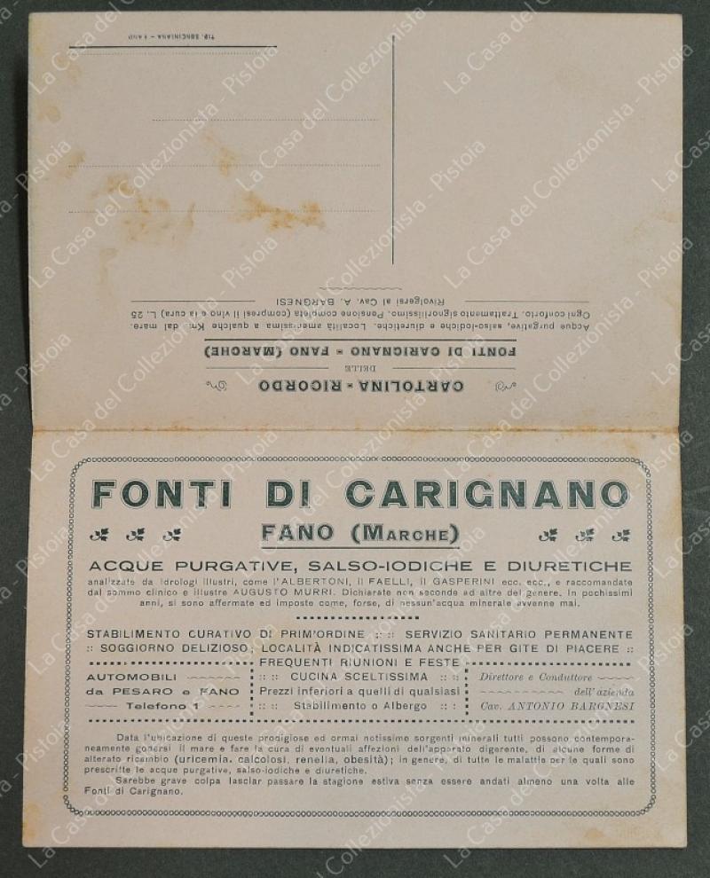 FONTI DI CARIGNANO, Fano. Cartolina d'epoca doppia, anni 1920