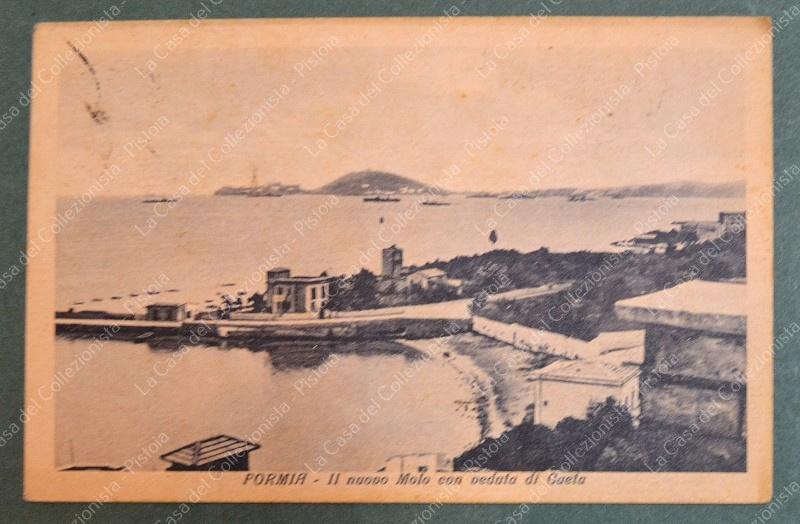 FORMIA, Latina. Il nuovo molo. Cartolina d'epoca viaggiata del 1936. Francobollo caduto. (Rif.F6976)