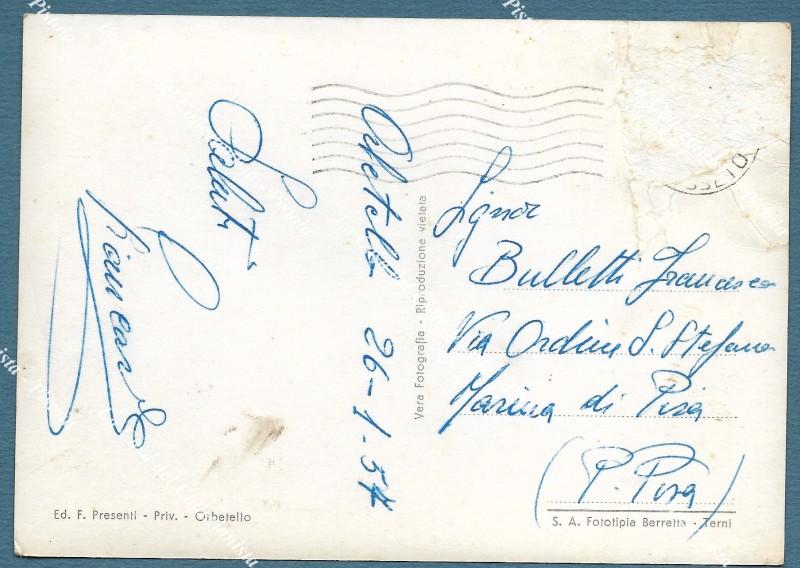 ORBETELLO, Grosseto. Il Duomo. Cartolina viaggiata nel 1957. Francobollo asportato e abrasione. Formato grande (cm 15x10,5). (Rif.F5846)