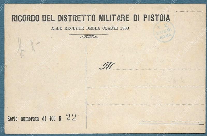 PISTOIA. Distretto Militare. Cartolina d'epoca numerata (numero 22 su tiratura di 100). Formato piccolo, non viaggiata, inizio 1900. Lieve piega d'angolo. (Rif.F7842)