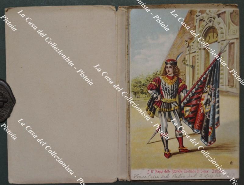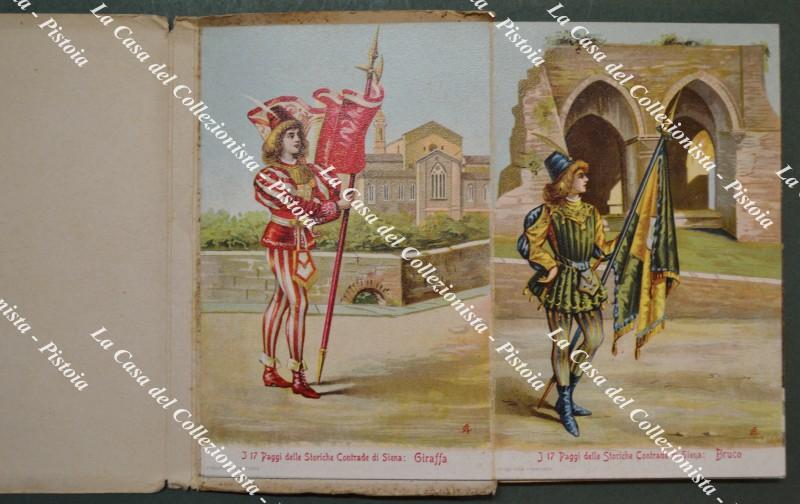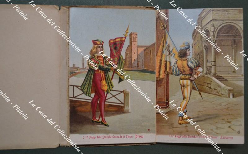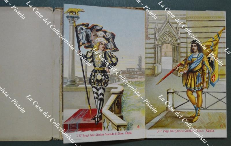 Siena. I PAGGI DELLE STORICHE CONTRADE. 17 litografie formato cartolina unite a fisarmonica. Dedica datata 1913.