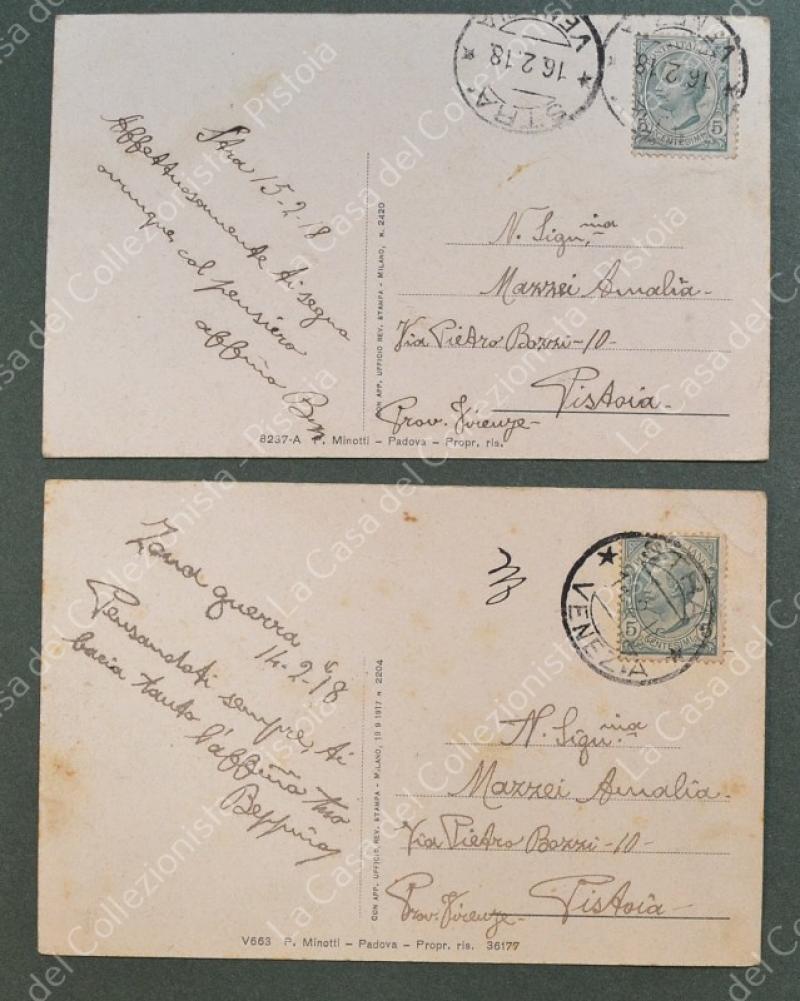 STRA, Venezia. 2 cartoline d'epoca formato piccolo, viaggiate nel 1918. (Rif.F7175)