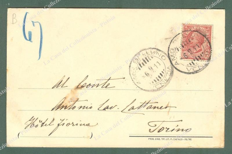 Veneto. S. GIUSTINA BELLUESE (Rivai), Belluno. Villa Azzoni Avogadro. Cartolina d'epoca viaggiata nel 1911. (Rif.D6444)