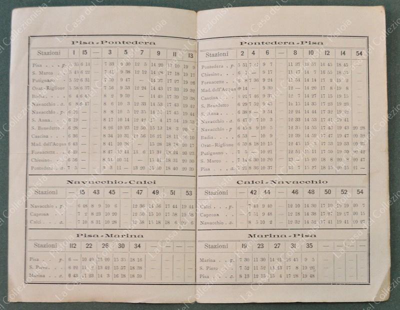 FERROVIE ECONOMICHE E TRAMVIE A VAPORE DELLA PROVINCIA DI PISA. ORARIO in vigore dal 15 novembre 1898. 4 pagine di cm 9x14. Raro. (Rif.F6848)