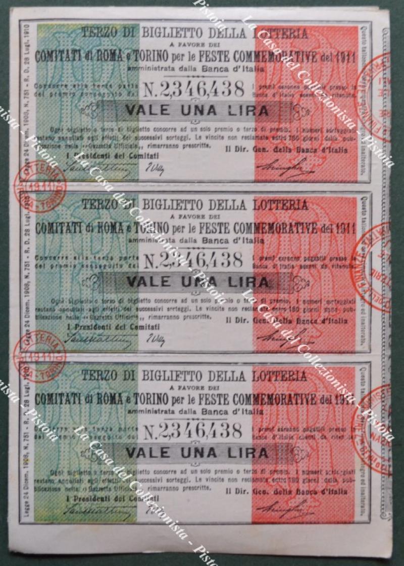 LOTTERIA NAZIONALE ROMA TORINO 1911 LOTTERIA NAZIONALE ROMA TORINO 1911 LOTTERIA NAZIONALE ROMA TORINO 1911