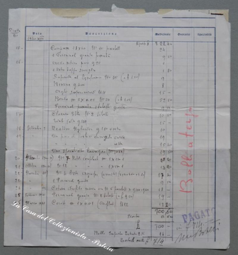 MARCHE DA BOLLO. Conteggio del 1941 con applicate a retro 28 pezzi da cent. 50 grigio. Una marca è stata spillata, qualche imperfezione. (Rif.D2671)
