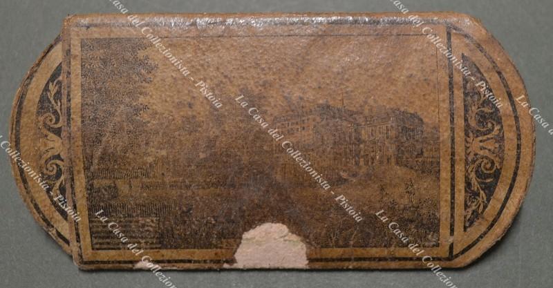 Napoleone, antico astuccio porta occhiali composto da due parti recanti sui lati incisioni di Napoleone e castelli francesi. Realizzato in carta (abrasioni e piccola mancanza di carta su un lato), misura cm 14x7 (chiuso). Databile nella prima metà '800. Contiene occhiali a cui manca una stanghetta. (Rif.F6958)