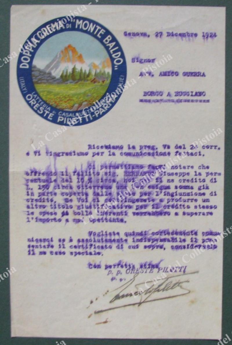 PARMA. LATTERIA PILETTI. Lettera intestata anno 1924