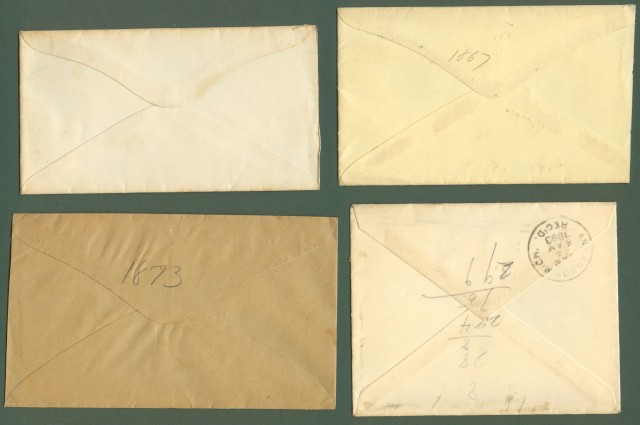 U.S.A. Quattro lettere affrancate con vari valori (Unificato 22, 35, 45, 101). Buona conservazione. (Rif.C3598)