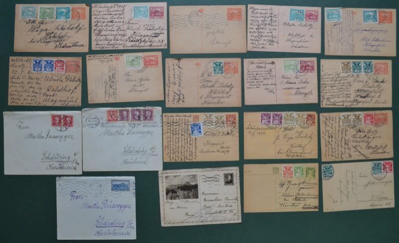 CECOSLOVACCHIA. Československo. 14 cartoline postali + 3 lettere per l'Austria (periodo 1919 - 1937). (Rif.F7362)