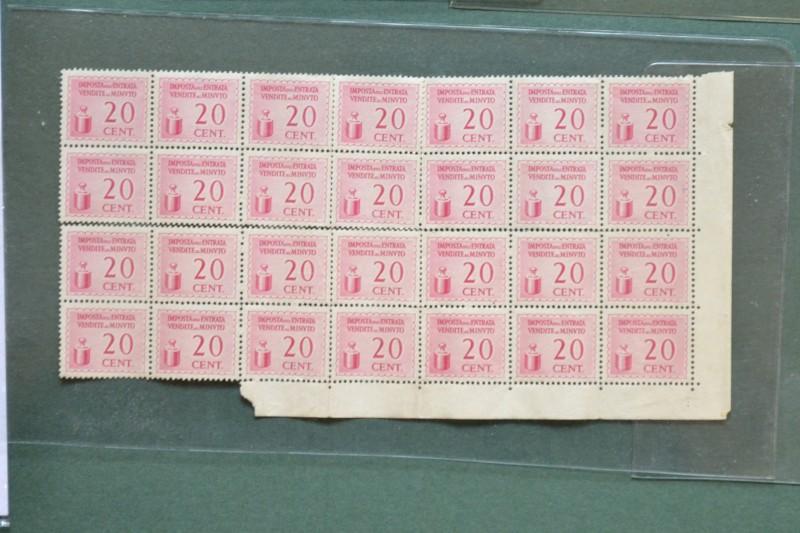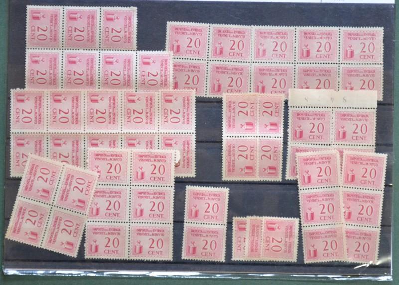 MARCOFILIA. MARCHE SULL'ENTRATA - VENDITE AL MINUTO. 200 marche da centesimi 20 nuove con gomma. Qualche difetto. (Rif.D8993)
