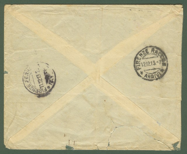 Regno - Colonie. LIBIA. Lettera raccomandata del 7.12.1913 da Tripoli per Firenze.
