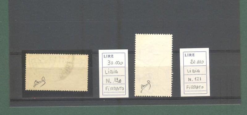 Colonie. LIBIA 1933. Settima Fiera di Tripoli. Cent. 30 bruno (Sassone n. 120), cent. 50 violetto (Sassone n. 121). Annulli originali. Firmati Biondi. (Rif.D2849)