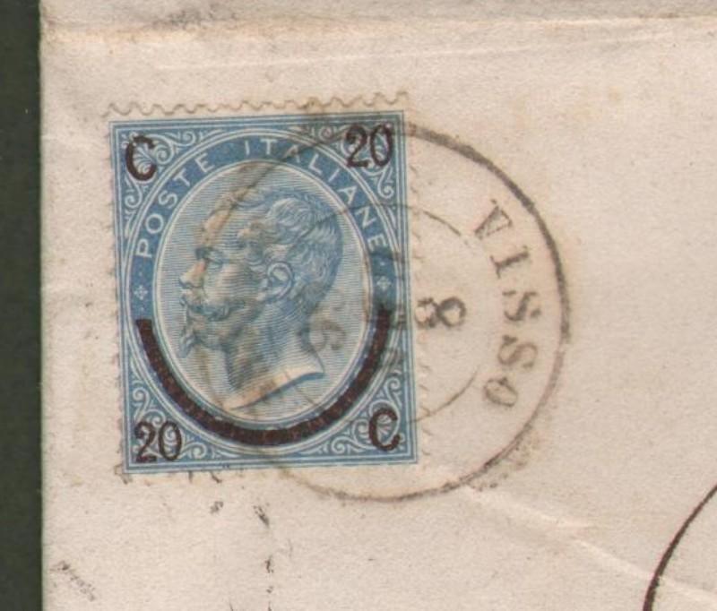 VISSO/MARCHE. Doppio cerchio sardo italiano su cent. 20 su 15. Lettera per Spoleto dell'8 gennaio 1866.