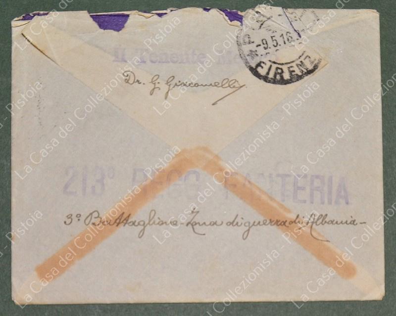 LEVANTE. VALONA. 20 centesimi su 30 pa. su 15 centesimi su lettera del 5.5.1916 dalla Posta Militare Albania (3). Sassone N.10. Francobollo ben dentellato. (Rif.F7278)