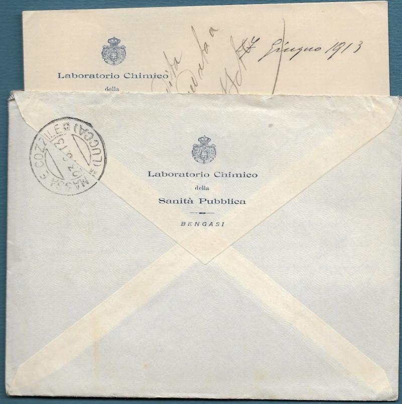 LIBIA. Centesimi 15 grigio su lettera da Bengasi del 1913.