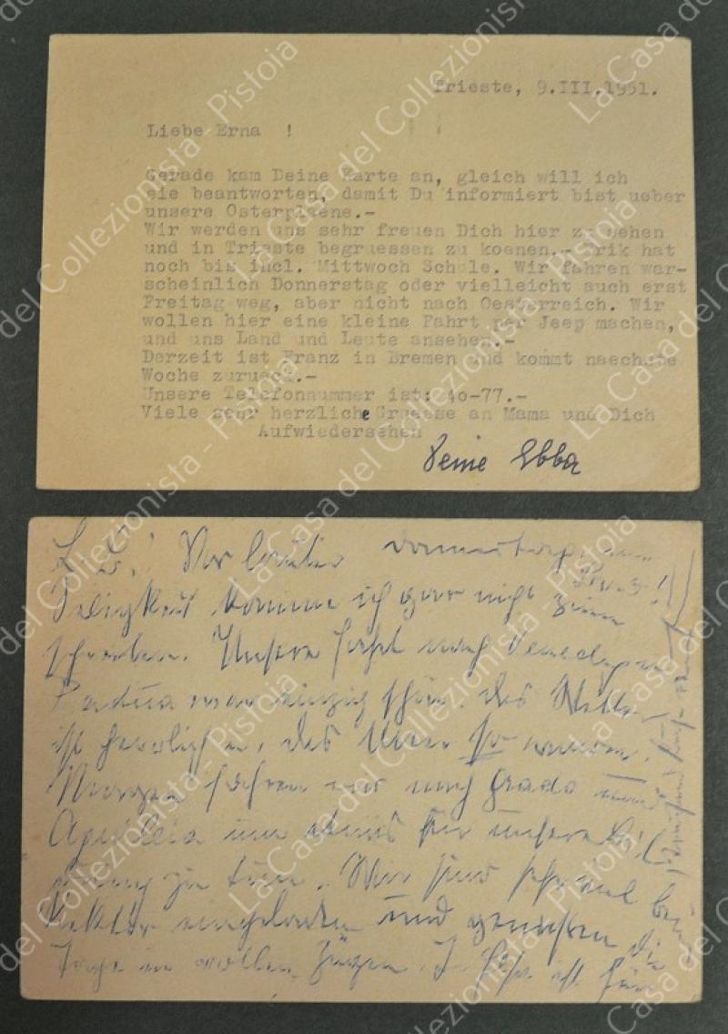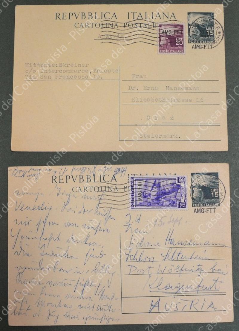TRIESTE A. 2 cartoline postali.... 1951 per l'Austria
