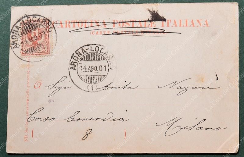 ARONA - LOCARNO. Natante. Cartolina d'epoca del 14 agosto 1901. (Rif.F6715)
