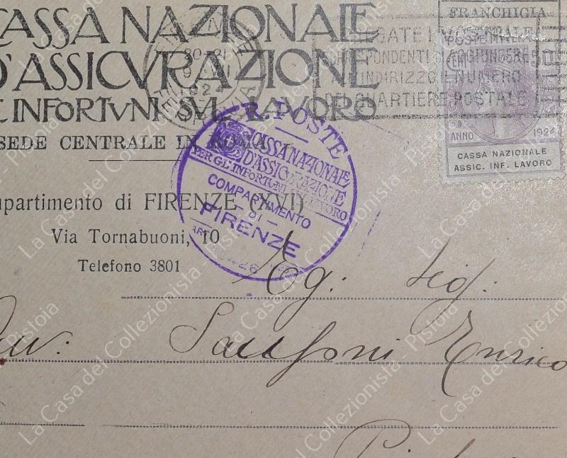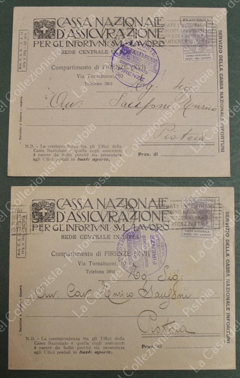 St. postale Regno. ENTI PARASTATALI. 2 buste del 1924 affrancate con cent. 50 violetto Cassa Naz, Ass. Lavoro