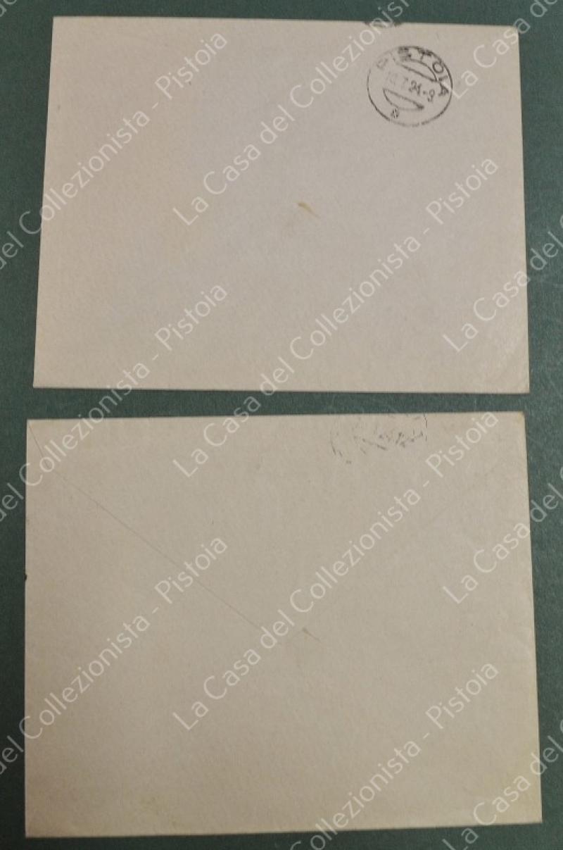 St. postale Regno. ENTI PARASTATALI. 2 buste dell'aprile e luglio 1924 affrancate con cent. 50 violetto Cassa Naz. Ass. Lavoro (Sassone N. 21). Le buste sono fresche. Uno dei francobolli è difettoso in alto, l'altro ha due denti corti sul lato destro. (Rif.F7271)