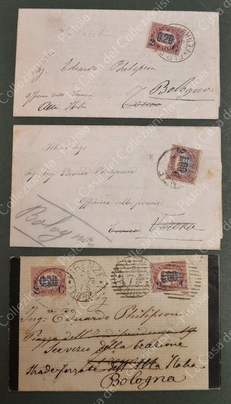 St. postale. REGNO ITALIA. Francobolli di servizio soprastampati. 3 partecipazioni del 1879