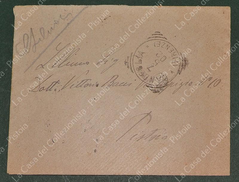 Storia postale Regno. TONDO RIQUADRATO DI CANDEGLIA (Firenze). Lettera per Pistoia del 1902. (Rif.F7274)