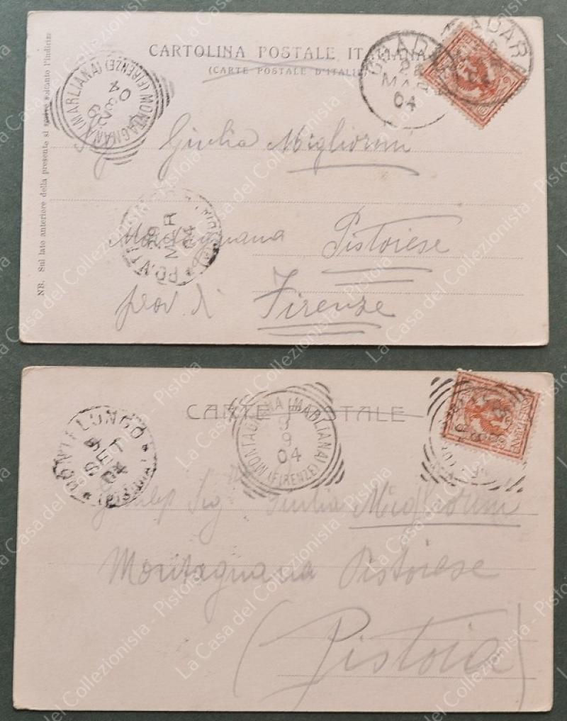 TONDORIQUADRATO. MONTAGNANA (MARLIANA) (FIRENZE). 2 cartoline d'epoca formato piccolo, viaggiate nel 1904. (Rif.F6597)