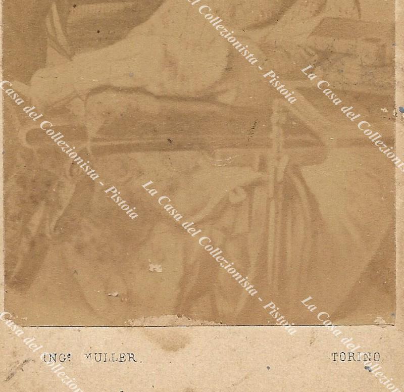GARIBALDI GIUSEPPE raffigurato seduto su una poltrona. Foto all’albumina di mm 57x90 su cartoncino di Muller a Torino di mm 61x105. Piccole imperfezioni, circa 1880. (Rif.F0875-116/76)