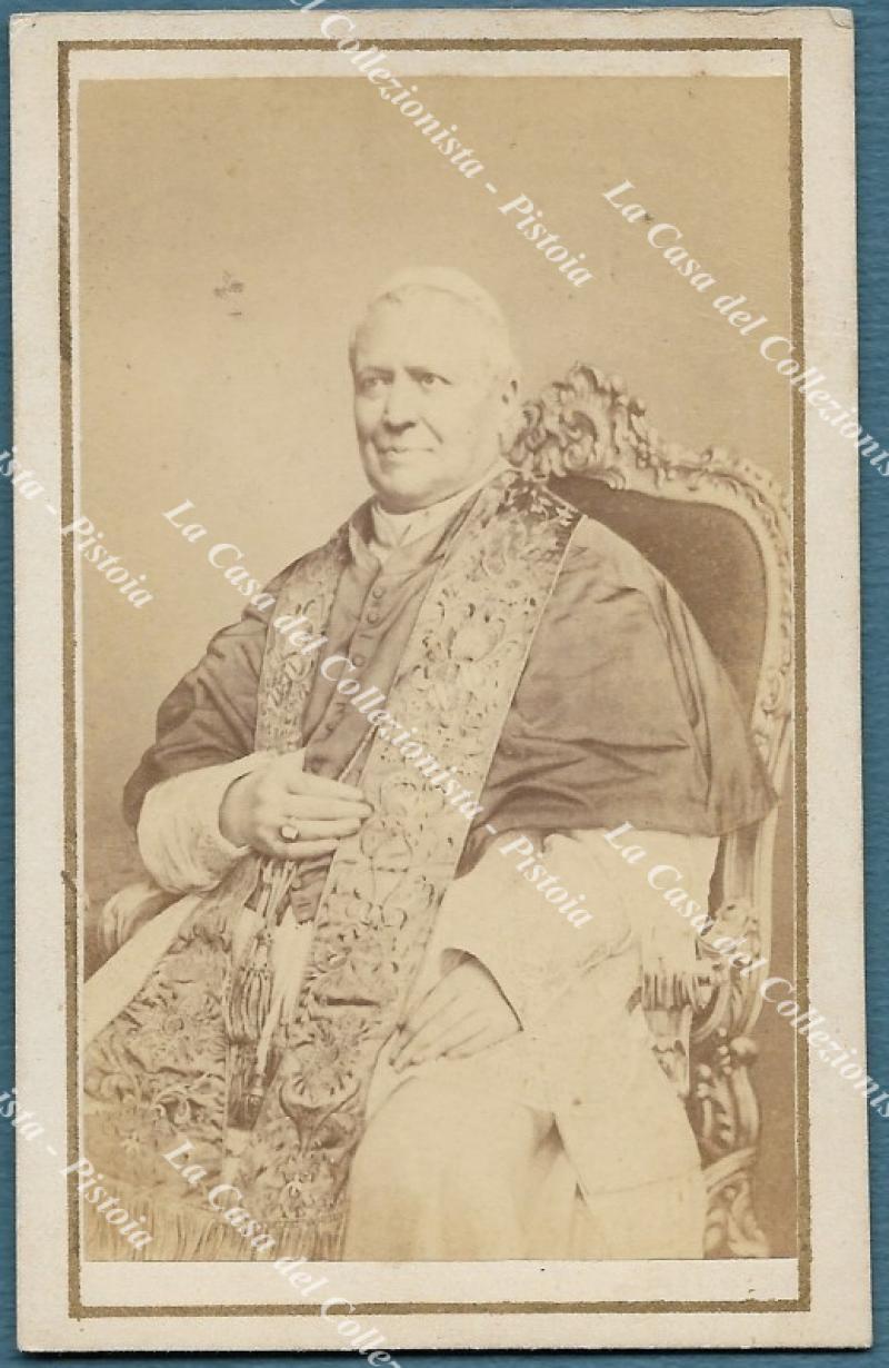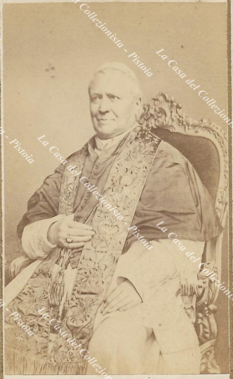 PIO IX, (nato Giovanni Mastai Ferretti, 1792 – 1878), Papa dal 1846. Raffigurato seduto. Foto all’albumina (circa 1870).