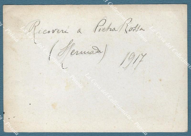 PRIMA GUERRA. 1917. Hermada; ricoveri a Pietra Rossa. Foto originale di cm 14,5x10 con didascalia a retro. (Rif.F7737)