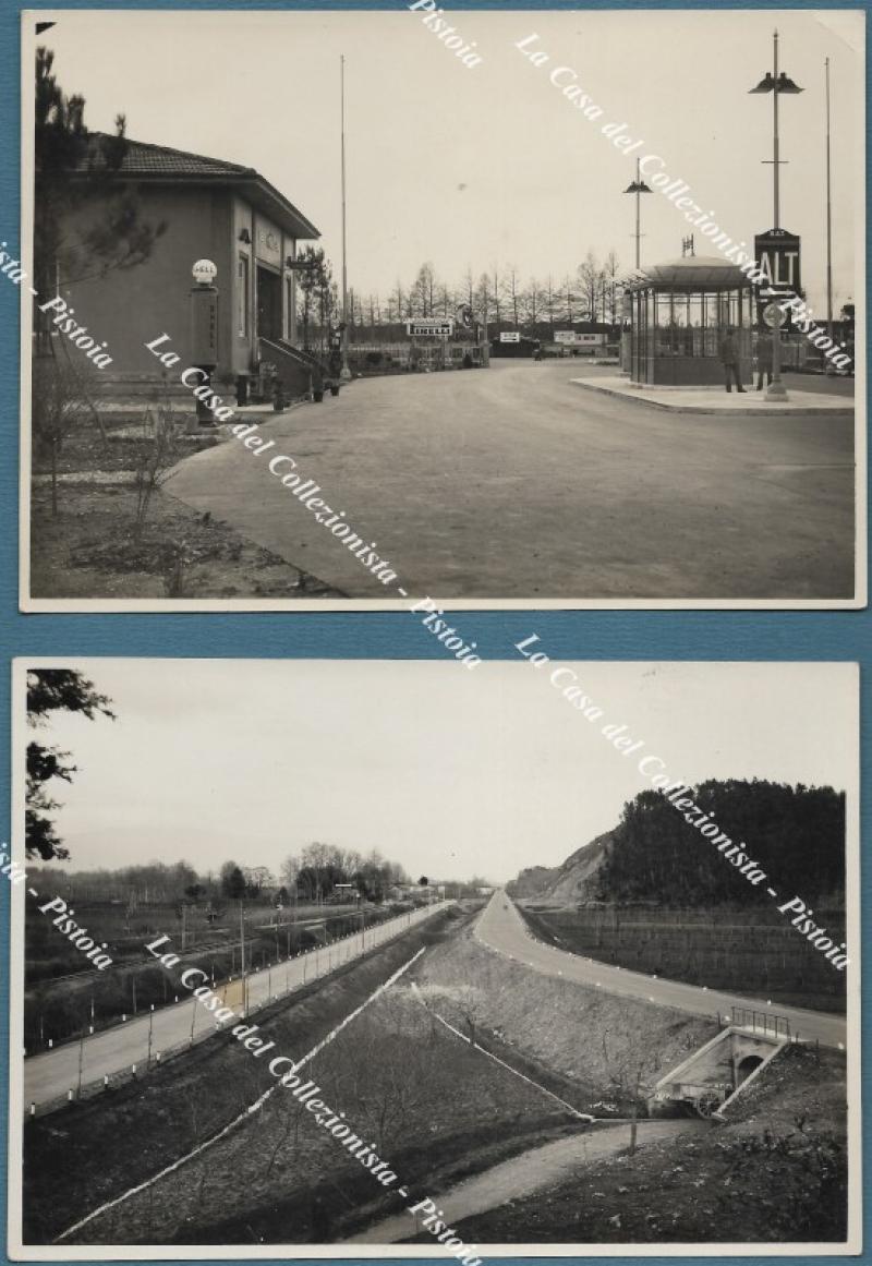 AUTOSTRADA FIRENZE - MARE. 2 foto originali dello Studio G. Vestri di Montevarchi. Ciascuna cm 17x12, anni '30. Una raffigura tratto tra Lucca e Migliarino, l'altro il casello d'arrivo a Migliarino. Conservazione ottima. Rare. (Rif.F6692)